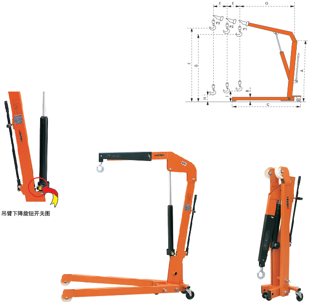 ● 根據(jù)需要,吊臂可三個(gè)工位調(diào)節(jié)。