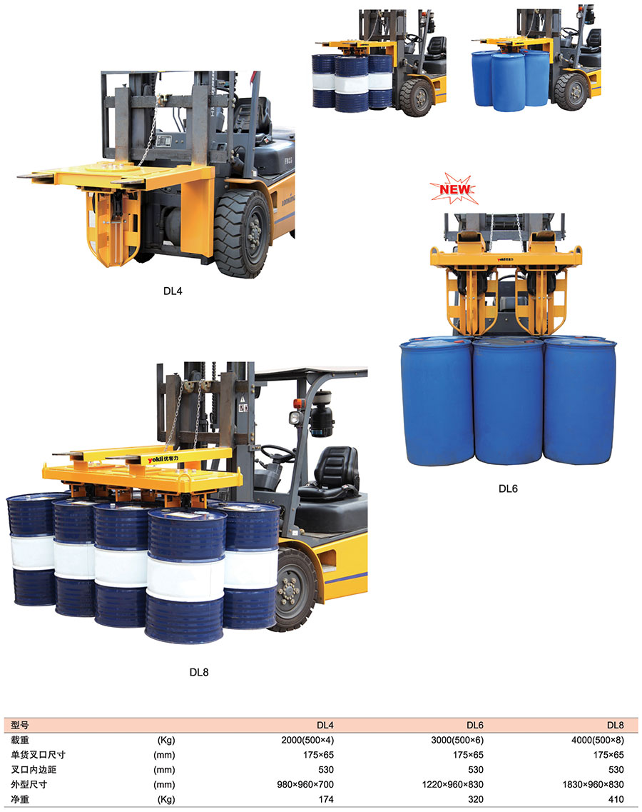 ● 桶夾被用來在許多 工業場所對各種桶進行搬運和堆碼,適于鋼桶、塑料桶和纖維桶。
